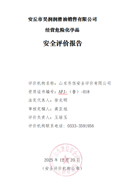 安丘市昊润润滑油销售有限公司位于山东省潍坊市安丘市景中路与景华街交叉口东北角,成立于2020年04月01日,2023年03月14日取得安丘市行政审批服务局核发的新的营业执照,该站投资人为刘巧燕。该加油站主要从事汽油和柴油的经营,经营方式为零售。 根据《产业结构调整指导目录(2024年本)》(国家发改委令第7号令)的规定,该加油站经营危险化学品项目不属于目录中的“鼓励类”、“淘汰类”、“限制类”项目,符合国家产业政策的要求。 该站于2023年03月10日取得《成品油零售经营批准证书》(证书编号:鲁油零售证书第3707092020号),有效期为2023年03月10日至2028年03月10日。该站持有的《危险化学品经营许可证》(证书编号:鲁潍危化经[2023]008064号),有效期自2023年01月17日至2026年01月16日。 依据《危险化学品经营许可证管理办法》(国家 安监总局令第55号,根据2015年5月27日国家安全监管总局令第79号修正)等法律、法规、文件的要求,危险化学品经营许可证的有效期为3年,有效期满后需要继续从事危险化学品经营活动的,应提出危险化学品经营许可证的延期申请,该加油站为需要更换危险化学品经营许可证的企业。为此,根据《危险化学品安全管理条例》等有关法律、法规规定,该站需更换危险化学品经营许可证,需对其经营条件进行安全评价。 自2023年01月17日取得《危险化学品经营许可证》以来,该加油站2023年加油站南侧新建一处洗车房,加油站总平面布局、加油工艺、危险化学品的储存能力未发生变化。营业期间未发生过安全事故。 该加油站现有从业人员3人,其中安全管理人员1名。该站已建立了安全生产责任制度、安全管理制度和安全操作规程等,制定了生产安全事故应急救援预案,成立了安全生产领导小组,配备了安全员,主要负责人和安全员取得了安全生产知识和管理能力考核合格证。其他从业人员经本单位培训考核合格。 该加油站主营汽油、柴油等成品油,共有加油机4台,其中双枪汽油加油机2台,双枪柴油加油机2台(加油机呈南北两排布置,北侧一排自西向东依次为92#/95#,0#/0#,南侧一排自西向东依次为92#/92#,0#/0#),汽油主要经营92#、95#,柴油冬季经营-10#,其它季节经营0#。无自助加油机。该站设有承重式埋地卧式内钢外玻璃纤维增强塑料双层储罐4台,其中汽油储罐2台,容积均为50m3,柴油储罐2台,容积均为50m3,油罐自西向东依次为92#、95#、0#、0#。柴油折半后计入加油站储罐总容积为150m3,该站为二级加油站。该站采用潜油泵式加油工艺,该站加油管道为双层热塑性管材,卸油、通气、油气回收系统管道为流体输送用无缝碳钢管材,加油工艺管道全部埋地设置,且不穿越站房。加油机加油软管设置安全拉断阀,油罐设有带有高液位报警功能的液位监测报警系统等信息化设备。加油机机体、值班室内设置紧急切断按钮,并实现手动复位。加油站设有油罐渗漏检测系统、汽油卸油油气回收系统、加油油气回收系统、三次油气回收系统。 |
