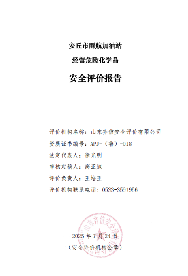 安丘市雨航加油站位于安丘市官庄镇南朱家庄央赣路126公里路西侧,该站成立于2006年2月22日,2021年12月13日取得安丘市行政审批服务局核发的营业执照,投资人为韩春海。该加油站主要从事汽油和柴油的经营,经营方式为零售。 该站前身为安丘市官庄镇南加油站,后于2011年6月23 日被山东大唐油气有限公司租赁,更名为山东大唐油气有限公司第十八加油站,2019年8月1日该加油站与山东大唐油气有限公司解除租赁合同,收回经营权,同时更名为安丘市雨航加油站,投资人变更为韩春海。 根据《产业结构调整指导目录(2024年本)》(国家发改委令第7号令)的规定,该加油站经营危险化学品项目不属于目录中的“鼓励类”、“淘汰类”、“限制类”项目,符合国家产业政策的要求。 该站于2024年09月04日取得《成品油零售经营批准证书》(证书编号:鲁油零售证书第3707063064号),有效期为2024年09月04日至2029年09月04日。该站持有的《危险化学品经营许可证》(证书编号:鲁潍危化经[2022]006046号),有效期自2022年09月16日至2025年09月15日。 依据《危险化学品经营许可证管理办法》(国家 安监总局令第55号,根据2015年5月27日国家安全监管总局令第79号修正)、《山东省危险化学品经营许可证实施细则》(鲁应急发[2025]4号)等法律、法规、文件的要求,危险化学品经营许可证的有效期为3年,有效期满后需要继续从事危险化学品经营活动的,应提出危险化学品经营许可证的延期申请,同时提出变更申请,该加油站为需要更换危险化学品经营许可证的企业。为此,根据《危险化学品安全管理条例》等有关法律、法规规定,该站需更换危险化学品经营许可证,需对其经营条件进行安全评价。 自上次取得《危险化学品经营许可证》以来,该加油站总平面布局、周边环境、加油工艺、危险化学品的储存能力未发生变化。营业期间未发生过安全事故。 该加油站现有从业人员4人,其中安全管理人员1名。该站已建立了安全生产责任制度、安全管理制度和安全操作规程等,制定了生产安全事故应急救援预案,成立了安全生产领导小组,配备了安全员,主要负责人和安全员取得了安全生产知识和管理能力考核合格证。 该加油站主营汽油、柴油等成品油,共有加油机4台,其中单枪汽油加油机1台,单枪柴油加油机1台,双枪双油品加油机2台,(加油机呈东西两排布置,西侧一排自北向南依次为92#、0#,东侧一排自北向南依次为92#/0#、95#/0#),汽油主要经营92#、95#,柴油冬季经营-10#,其它季节经营0#。无自助加油机。该站设有埋地卧式内钢外玻璃纤维增强塑料双层储油罐4台,其中2台为30m3汽油罐,2台为30m3柴油罐(油罐自北向南依次为0#、95#、0#、92#),柴油折半后计入加油站储罐总容积为90m3,该站为三级加油站。该站采用自吸式加油工艺,该站加油管道为双层热塑性管材,卸油、通气、油气回收系统管道为流体输送用无缝碳钢管材,加油工艺管道全部埋地设置,且不穿越站房。加油机加油软管设置安全拉断阀,油罐设有带有高液位报警功能的液位监测报警系统等信息化设备。加油机机体、值班室内设置紧急切断按钮,并实现手动复位。加油站设有渗漏检测系统、汽油卸油油气回收系统、加油油气回收系统、三次油气回收系统。 |
