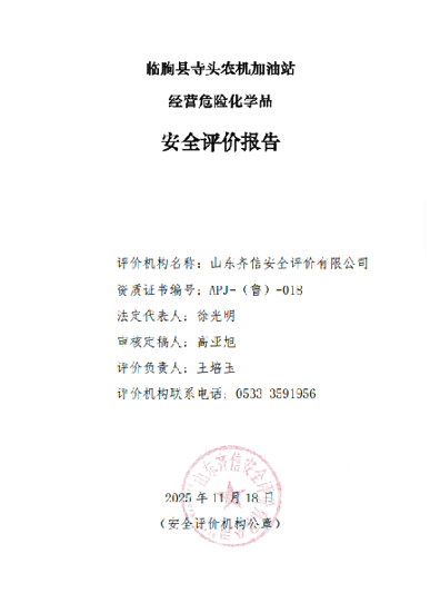 临朐县寺头农机加油站位于临朐县寺头镇寺头村临九路27公里300米右侧,该站成立于2011年6月20日,2016年5月23日取得临朐县市场监督管理局核发的新的营业执照,投资人为马传刚。该加油站主要从事汽油和柴油的经营,经营方式为零售。 根据《产业结构调整指导目录(2024年本)》(国家发改委令第7号令)的规定,该加油站经营危险化学品项目不属于目录中的“鼓励类”、“淘汰类”、“限制类”项目,符合国家产业政策的要求。 该站于2021年02月04日取得《成品油零售经营批准证书》(证书编号:鲁油零售证书第3707093079号),有效期为2021年02月04日至2026年02月04日。该站持有的《危险化学品经营许可证》(证书编号:鲁潍危化经[2022]012052号),有效期自2022年12月25日至2025年12月24日。 依据《危险化学品经营许可证管理办法》(国家 安监总局令第55号,根据2015年5月27日国家安全监管总局令第79号修正)等法律、法规、文件的要求,危险化学品经营许可证的有效期为3年,有效期满后需要继续从事危险化学品经营活动的,应提出危险化学品经营许可证的延期申请,该加油站为需要更换危险化学品经营许可证的企业。为此,根据《危险化学品安全管理条例》等有关法律、法规规定,该站需更换危险化学品经营许可证,需对其经营条件进行安全评价。 自2022年12月25日取得《危险化学品经营许可证》以来,该加油站总平面布局、周边环境、加油工艺、危险化学品的储存能力未发生变化。营业期间未发生过安全事故。 该加油站现有从业人员4人,其中安全管理人员1名。该站已建立了安全生产责任制度、安全管理制度和安全操作规程等,制定了生产安全事故应急救援预案,成立了安全生产领导小组,配备了安全员,主要负责人和安全员取得了安全生产知识和管理能力考核合格证。其他从业人员经本单位培训考核合格。 该加油站主营汽油、柴油等成品油,共有加油机6台,其中单枪汽油加油机4台,双枪柴油加油机1台,单枪柴油加油机1台(加油机南北两排布置,北侧一排自西向东依次为95#、92#,南侧一排自西向东依次为0#/0#、92#、92#、0#),汽油主要经营92#、95#,柴油冬季经营-10#,其它季节经营0#。无自助加油机。该站设有单层钢质油罐3台,油罐安装在罐池内,罐池进行了防渗处理,其中30m3汽油储罐2台,30m3柴油储罐1台,(油罐自北向南依次为0#、92#、95#)。柴油折半后计入加油站储罐总容积为75m3,该站为三级加油站。该站采用自吸式加油工艺,该站加油、卸油、通气、油气回收系统管道为流体输送用无缝碳钢管材,加油工艺管道全部埋地设置,且不穿越站房。加油机加油软管设置安全拉断阀,油罐设有带有高液位报警功能的液位监测报警系统等信息化设备。加油机机体、值班室内设置紧急切断按钮,并实现手动复位。加油站设有油罐渗漏检测系统、汽油卸油油气回收系统、加油油气回收系统、三次油气回收系统。 |